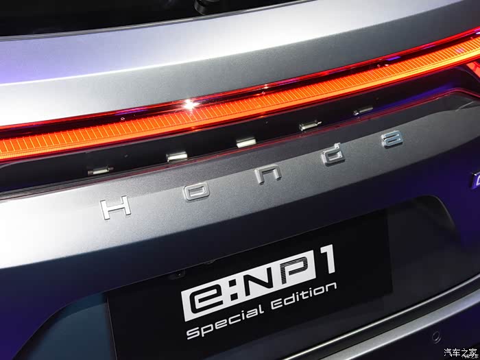 在e:NP1极湃1尾部取消了尾标“H”,取而代之的是“Honda”全名徽标,更加国际化。