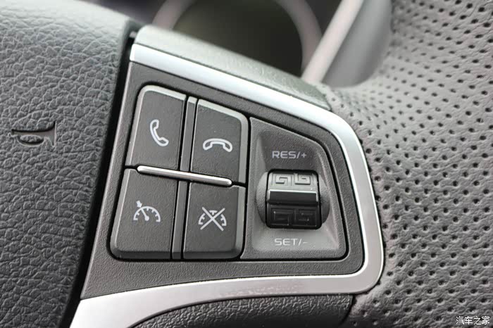 蓝牙电话和定速巡航功能 开启就是按左下方的钟表键 然后右侧的旋钮上下调节速度 ,关闭就是按那个打叉的键