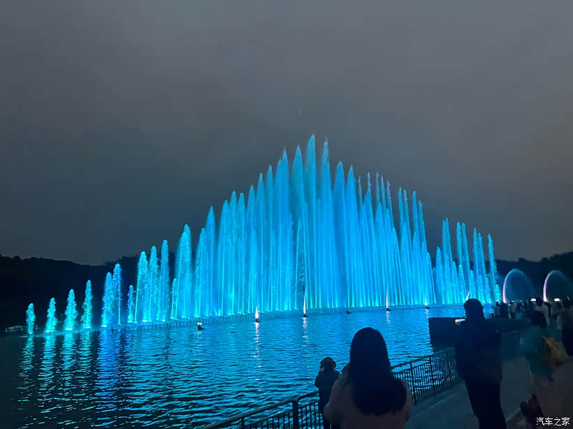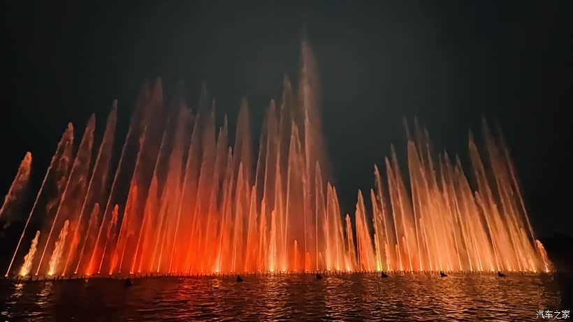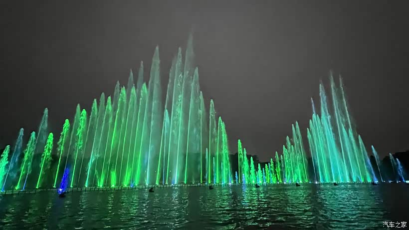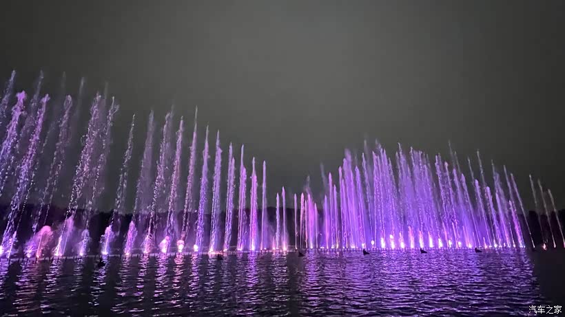灯光亮起,喷泉变成紫的粉的,比白天更梦幻。散场时我们还不停回头,女儿拉着我的手说下星期还要来。这寻常的傍晚,因为这片水花和笑声,变得格外明亮。