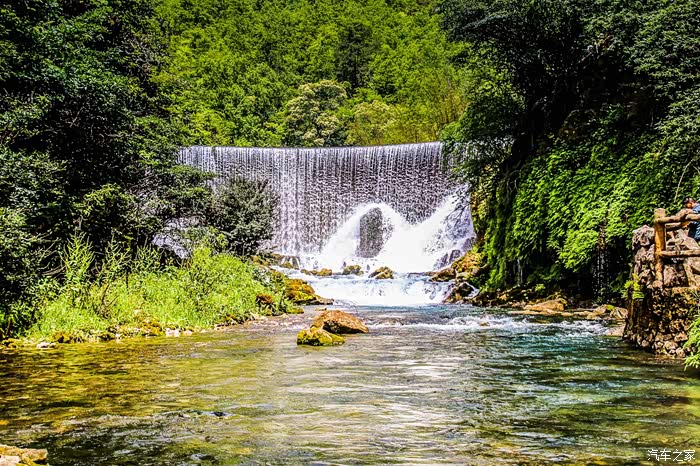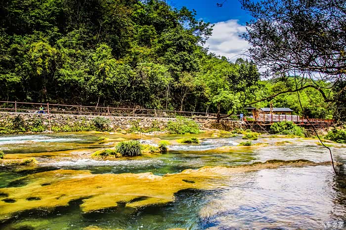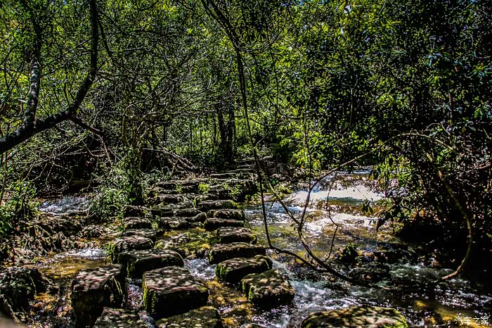下一站来到水上森林,长约600米,河谷里丛生着茂密的乔木和灌木,形成一道翡翠屏障。河水从河床的杂木林中穿涌而下。可谓是“水在石上淌,树在水中长”的奇景。