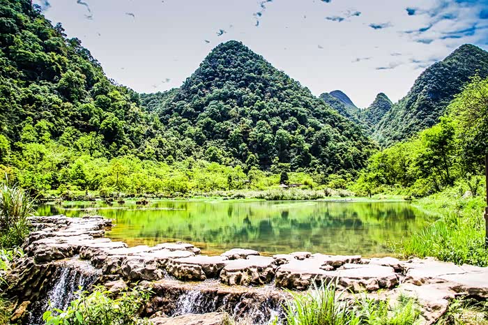 小七孔风景区位于贵州省荔波县城南部30余公里的群峰之中,距大七孔景区5公里,景区全长7公里,面积约10平方公里,有百多个游览景点。是集山、水、林、洞、湖、瀑为一体的原始奇景,景区名字源于清朝道光年间修建的一座七孔古桥,古桥横跨在响水河上,是古代黔南通往广西的交通要道。