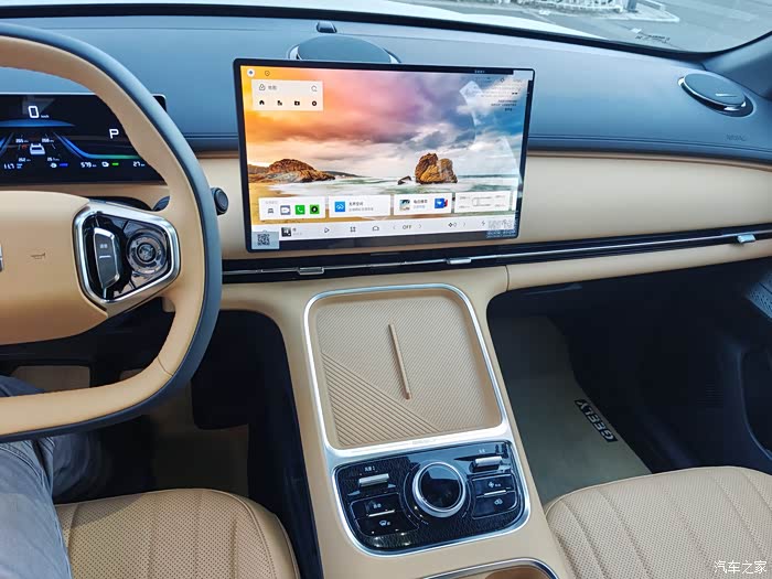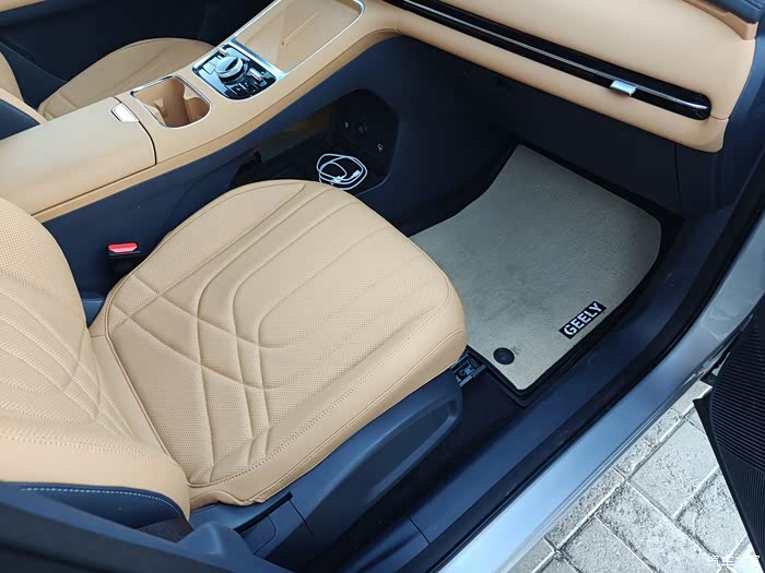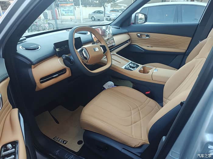 星舰7的内饰只有棕色和白色两款,我选的是棕色内饰,因为家里有孩子,棕色比白色还是要耐脏一点。整个空间只有两块屏幕和少许按键,这样的设计比较简洁,科技感也相对更足。内饰多数地方都是黄色皮质包裹的材质,摸起来软软的,手感很棒。座椅坐着比较柔软,支撑性和包裹感比较好,长时间坐着也不觉得累。但是网上也有评论说坐久了座会塌,我65KG,目前开了十几天,还没有发现塌陷的问题。