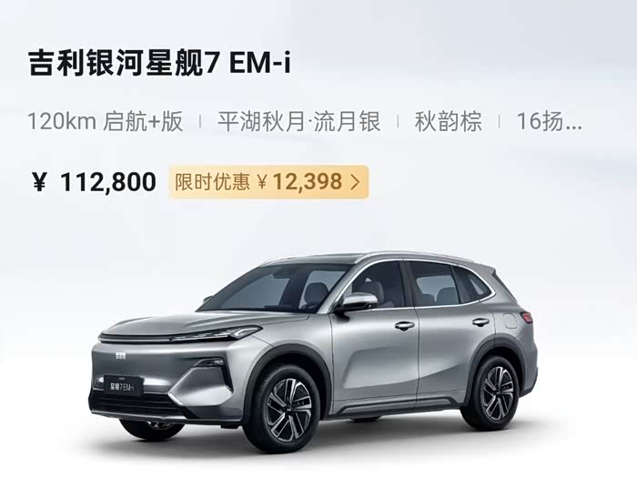 购车车型:银河星舰7 EM-i 120KM 启航+版