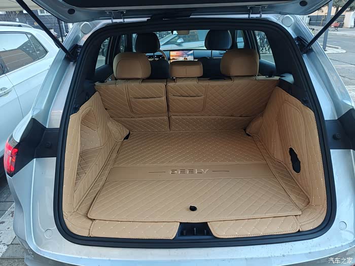 后备箱下沉空间也很充裕,下沉空间可以把随车充、随车工具之类的东西都放里边,没有东西需要占用后备箱空间,就显得车很干净。试驾的时候我还把后排完全放倒试了一下,完全就是一张大床,从头到脚整个身子都躺在车里,配合官方商城的床垫,非常期待夏天假期出去野外郊游躺在车里看风景。