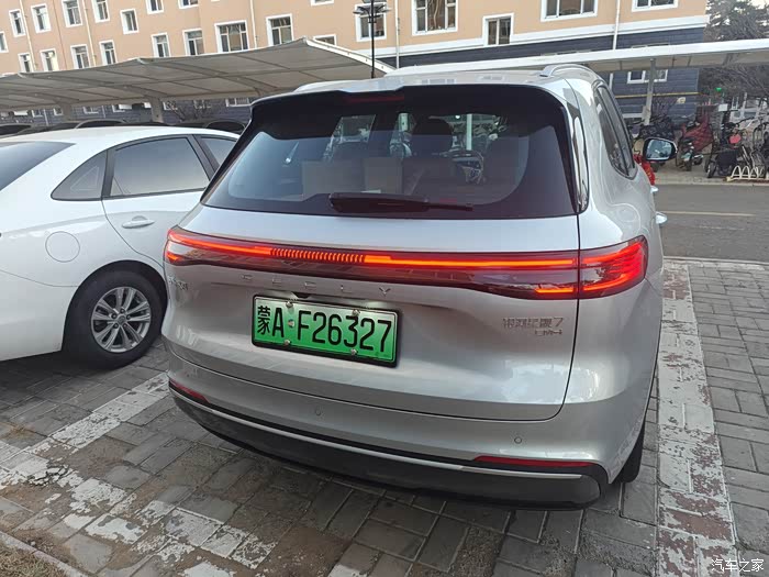 星舰7属于耐看型,个人感觉设计沉稳大气,非常适合家用。前后一体式的车灯科技感十足,特别是晚上后贯穿式的尾灯显得非常饱满,越看越好看。我觉得与E5外观差不多,在吉利新河车品商场里,星舰7和E5的车窗遮阳帘是一样的。我买的颜色是银色,去4s店提车的时候除了银色就是黑色,黑色太不耐脏了,特别是北方地区,洗完车一出来就落一层灰。银色比较耐脏,自己和媳妇也都比较中意这个颜色。当然,我们觉得绿色也很好看,很有个性,但是没有现车啊,着急领补助,实在是等不及了。