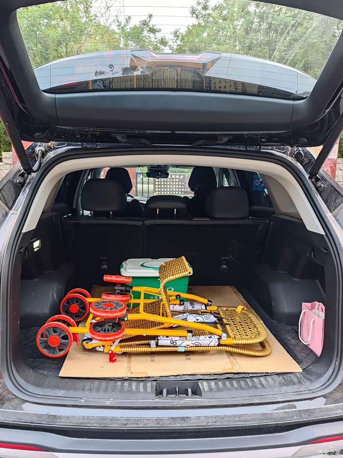 这车空间我们一家子都很满意,后排空间很大,足够我家小孩玩耍;加上后排座椅还可以放倒,可以容纳纵向1.8米高物体;还有后备箱开口也够大,拿放东西也方便。
