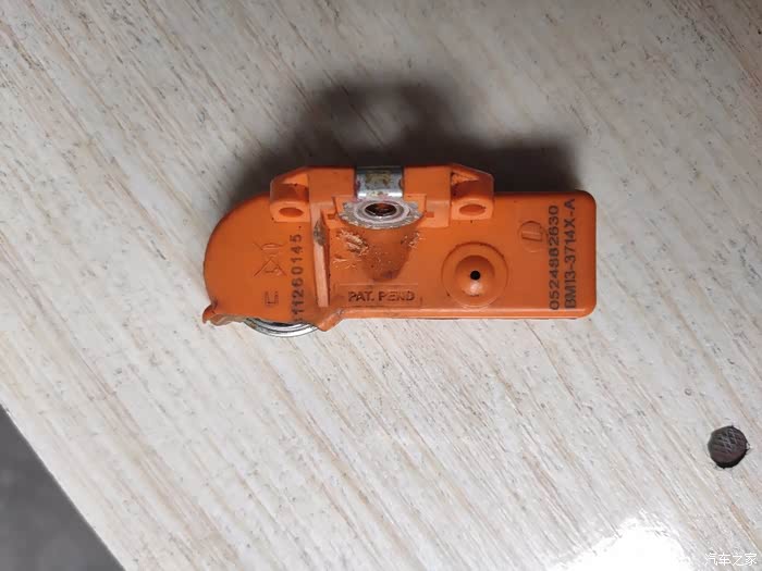 胎压监测传感器有电池的,我的也这样,时有时无,电池可以换,不过很难,动手能力要强,电池好像是焊住的,还有胶,找到一张图片楼主看看,我最近也考虑要不要折腾