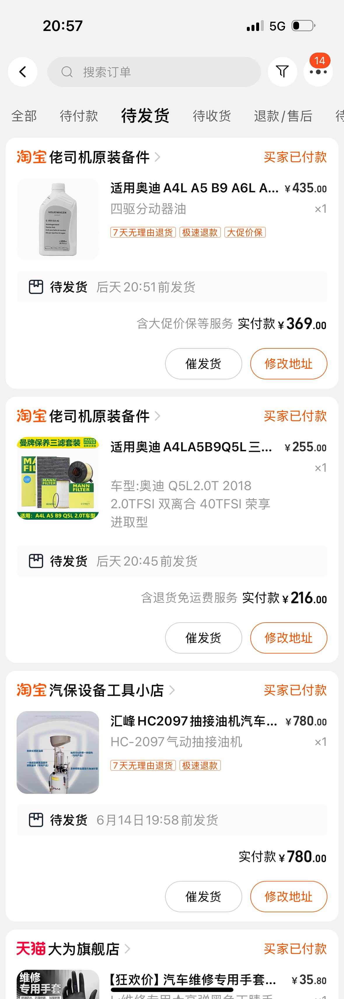 18年Q5L,快到保养的时候了,本市的4S店已倒闭多时了,更别提我还在市下面的一个县,现在如果选择4S保养只能到省会长沙,太远了,还好本地有个常年合作的师傅,人很好也很靠谱,但是呢本来也是修百家车的,就是设备没多少,都是原来老日系车的东西,打算自己买机油机滤去他那里换,自己有一把5-60NM的扭力扳手,5054,可以自己执行保养复位,就是4S店好像Q5L都是抽机油的方式更换的,想弄个抽油机,不知道什么牌子什么形式比较好,