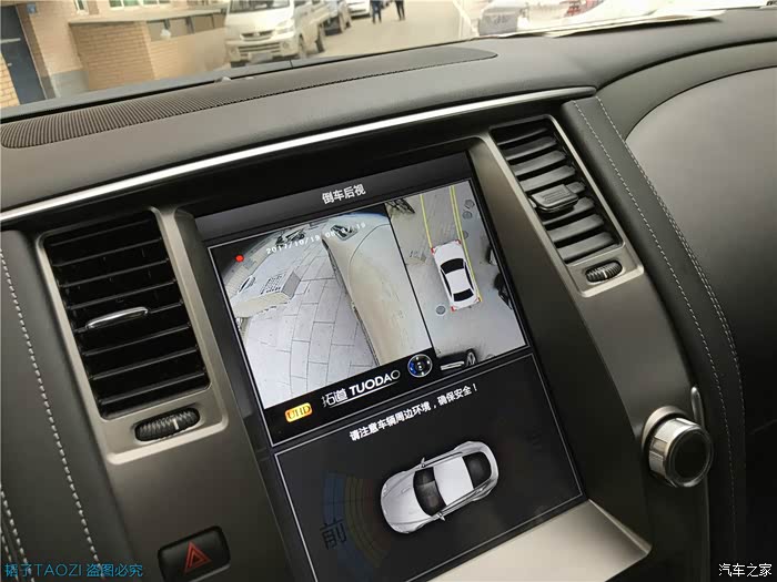 挂倒挡切换后视!可以清晰看到自己的拖车钩及后杠来判断车辆!真的很方便!