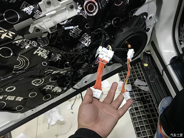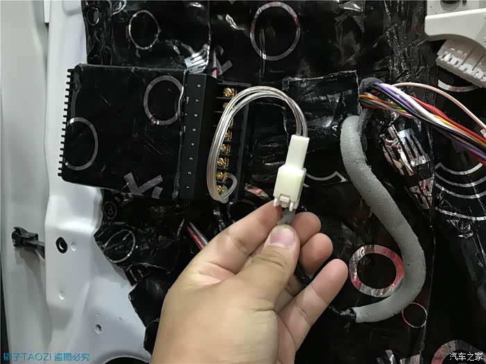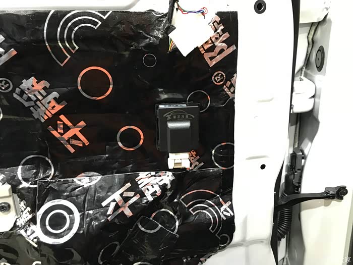 这个升窗器很有用!直接和主门里两个插头对插!如果下车忘记关窗户会自动关闭!而且锁车后视镜会自动折叠!这才有点气质!这后视镜下车不折叠,别人以为不是电动后视镜呢!拆门了顺便!主机盒很小,做工很精致!有便宜的一百多的没要!装就装个好的才两百多!这个看着做工和线束都好!原车不带投影灯就算了,装个灯泡也行啊!居然给扣了个塑料盖!后门的线里边预留好了,前门没有预留,拆门板顺便都给装上了!