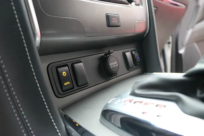 装这个雾灯开关也要精挑细选!原车没有雾灯,但是拆开前杠,里边已经预留了雾灯的插头,它的总线已经具备了,就差开关了,如果单独装开关就需要单独从车里车外来回走线!麻烦不说,又增加了隐患!所以必须选择原厂雾灯开关!这个开关挺气人的!就因为一个功能!你出场就给我带上不行吗?哪怕你不带雾灯我也忍了!害的我花了三百多大洋在改装店顺便一起换了原厂的雾灯开关,这个开关就是高配途乐上的!安装倒是很简单不用拆方向盘,安装店师傅两分钟就搞定了!安装后,仪表的前雾灯指示灯点亮!完美!这个杆子上还带自动大灯档位但是不能用,后来了解才知道!既然没有配光线感应器!如果要实现原车自动大灯还需要中控打孔安装感应器!还需要刷电脑!大工程还是算了吧!直接装了个专用的自动大灯!装的途乐专用的自动大灯!感应器放在前风挡下边!挺美观的!这个自动大灯比原厂的还高级一些!晚上找车按一下锁车,就会自动开大灯,然后有两个档位!天不是很黑开小灯!天全黑开大灯!晚上熄火锁车后还有延迟30秒关闭功能!太强大了!是不是SE的您正在看帖子,又开始恨我了