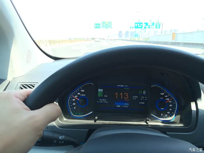 上了高速之后,就感觉心里有点慌慌的,EV系列速度开到110以上的话,码表就显示为黄色了。这时候车身会稍许有点飘。加上天气热,4s贴的所谓TBT膜似乎没有什么效果。手心都出汗了。