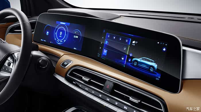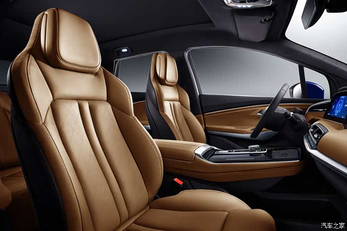 新车内饰采用了大面积皮质材料包裹,整体设计拥有很强的豪华感。中控台区域设计流畅而富有层次感,液晶仪表与中控屏被一块曲面屏幕连接在一起,为内饰增加了极强的科技感。此外,新车的挡把采用自动升降式设计,在车辆启动以及熄火时,它也会跟着上升、下降,非常有仪式感。
