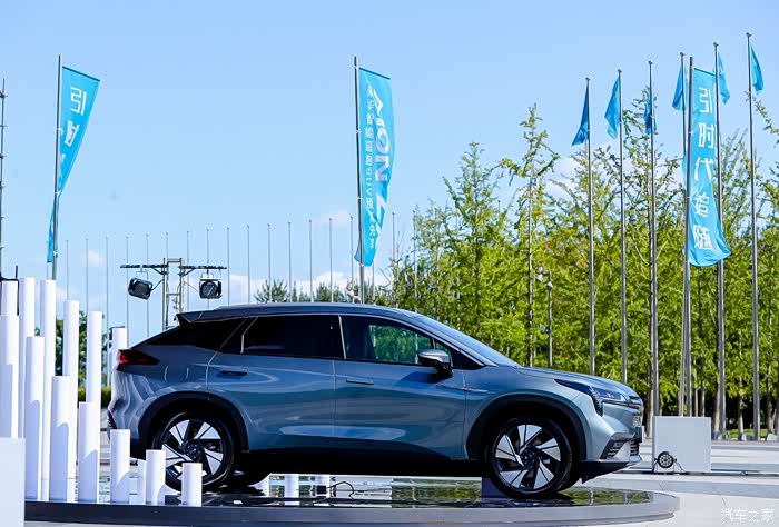 Aion LX的车身尺寸为4786*1935*1685mm,轴距达到2920mm。新车侧面整体造型简约,腰线从前轮拱上侧一直延伸到尾灯处,设计的上扬而锋利,配合悬浮式车顶设计,让车侧显得富有动感与力量感。