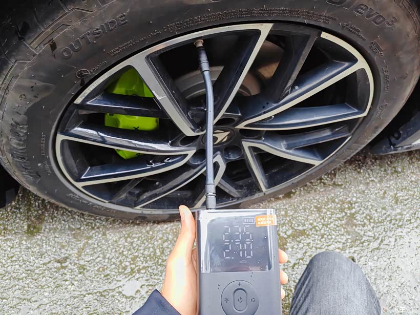 其次是便携式打气泵。胎压方面,冬季气温每降10℃,轮胎气压会减少0.1MPa,极狐αS5自带胎压显示,但我还是备了便携式打气泵,每个月测一次,把胎压维持在2.7-2.8MPa之间,既保证良好的续航,又能避免轮胎亏气导致的磨损,毕竟带着家人出行,轮胎安全容不得半点马虎。