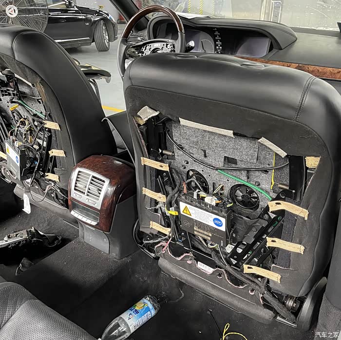 8、原车是灰色内饰,且皮质已经很旧,加上本人不喜欢这个颜色,于是全车移植S600黑内,同时加S600动态座椅功能。