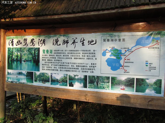 可以乘船游湖,还有个天钟洞也没去成,因洞内有一形似寺庙大钟的钟乳石面而得名,给一些讲解费即可,洞离鸳鸯湖还有500多米,得走路。但此时女儿犯困,要睡了,再说也将十八点了,就作罢,坐观光车返回大门