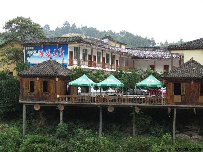 离小七孔景区大门还有二百米的地方有一小村庄,依托景区全部都搞起了农家乐