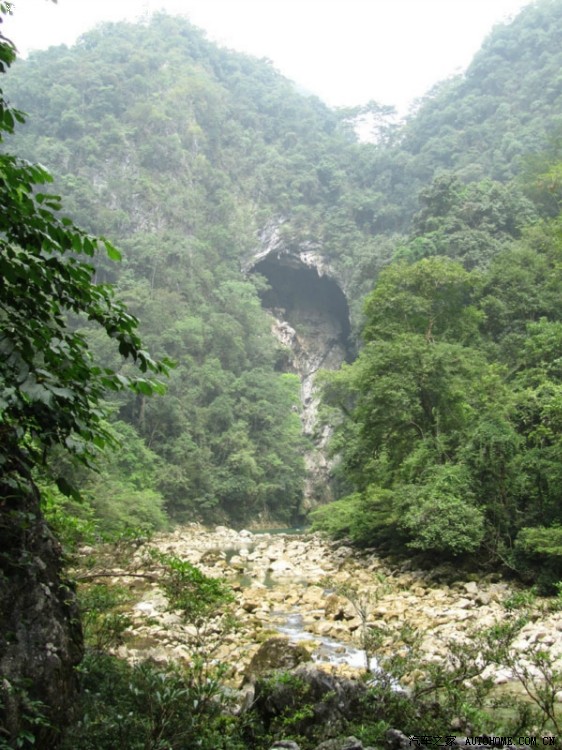 走进天然峡谷(这个峡谷一说山神峡,一说恐怖峡),逆水前行1公里,左岸有座宽、高100多米的峭崖直冲云霄,这条河叫打狗河,这条河作为支流之一流入广西南丹境内,再流到河池金城江区就叫龙江河了,呵呵,咱常年喝的水就是从这里来嘀。