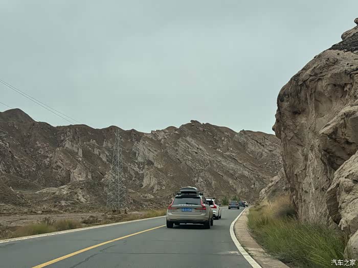 相较于丹霞景区,外星谷的赤色岩壁则如外星同战场般,最让我们期待的就是可以驾车欣赏风景,这让大家都显得无比兴奋。山体棱角分明,绝对是平时见不到的奇特景色,买好门票 ,下载了离线地图后,我们开车入谷 ,V60 和 V90 的雷神之锤大灯尾灯仿佛在外星谷中划出凌厉线条,太帅了!