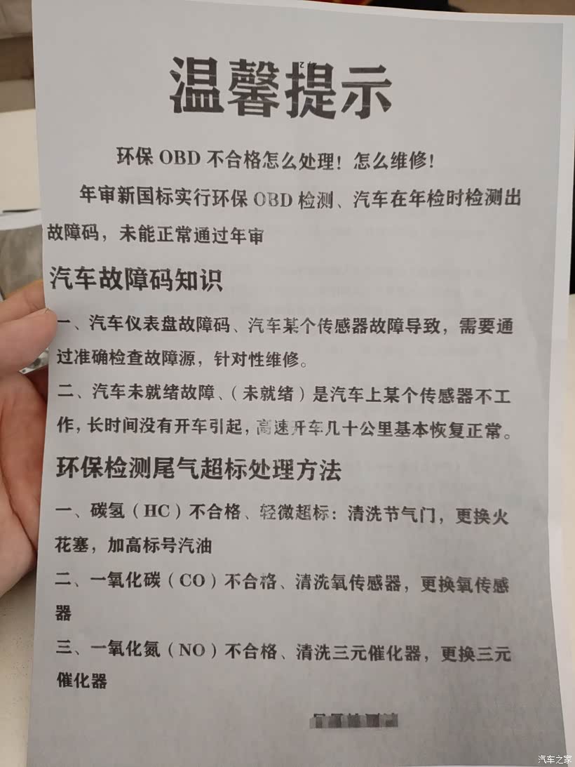 车辆检测站的一张提示说,obd未就绪是很常见的,建议跑一下高速