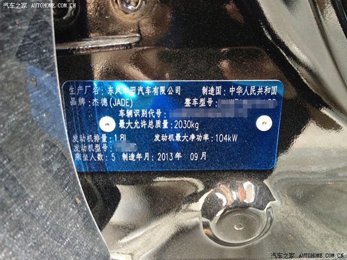 结果一进东本展厅,两台杰德映入眼帘,左边一台白色5座,右边一台黑色4+a,我姐眼神穿过人群一眼看中黑色杰德,连走带跑地坐进里边,内饰让人眼前一亮,还有特别是那一大块实木(不知道是不是看了之前内饰做工差的车,觉得杰德内饰做工差的勿喷我等土鳖。。。),于是立即试驾,试驾的是绿色豪华4+a,动力一般,CVT很平顺,但本来动力就不咋地,所以更希望是5AT,总体来说各项多很满意。。。于是心想就杰德吧。。(是我姐心想,各位抱歉了,我老把自己无形中代入。。。)关于在某海4S谈杰德价的过程就省略了,这不是重点,刚好有一辆乞丐版黑外黑内现车,下了1W订就她了,价格是17.5W落地。之后以为可以安心过完国庆节等车管所上班再上牌,结果我姐一逛论坛(我不知道她怎么找到汽车之家的杰德论坛)发现有便宜几千的价格,然后让家人直接联系某江4S店按那个价谈,通过电话很快就谈成了,而且刚好也有乞丐版黑外黑内现车!!也是现车!!直接打款订下来,把之前订的车给退掉,10月7号直奔4s要车。到4S店后经理直接招呼我们,然后他说老总吩咐过能送的都送,所以我们都不用磨叽,底盘装甲。。防爆膜。。脚垫。。车锁。。香水。。。之类的,有送的都要了。此后过了三天,4S把底盘装甲喷好,防爆膜贴好之后,领个临牌就开回家等上牌了(因为我姐要回某海上班,车子就留在家里,上周末才有空回来选牌子,现在还要等正式拿到牌子再开去某海,所以这段时间里车子都归我)