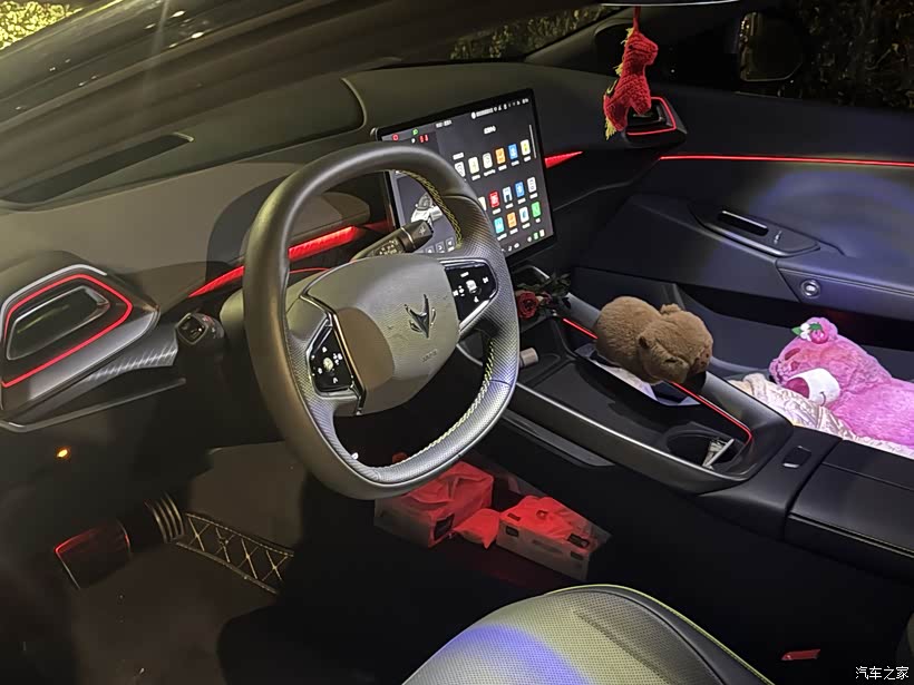 内饰方面,算是这款车的加分项。进入车内,第一感觉就是简洁规整,没有多余的物理按键,大部分功能都集中在中控大屏上,操作起来很方便。用料很扎实,中控台、门板等处都用了软质包裹,触感细腻,而且异味很小,提车的时候基本只有一点点新车的淡淡味道,通风几天就完全散了,这点对于有老人小孩的家庭太重要了。