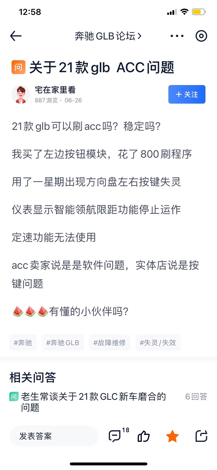 我换了ACC开了2个月后去保养,保养没做来回路上也出现限速功能故障,第二天左右按键都不能用了,开去安装店,店里也没碰到过2边按键都不能用,奇怪的是拆下安全气囊后所有按键正常了,后来决定ACC拆掉不要了,换回原装按键刷回原料的程序了,ACC货太复杂了不敢用了
