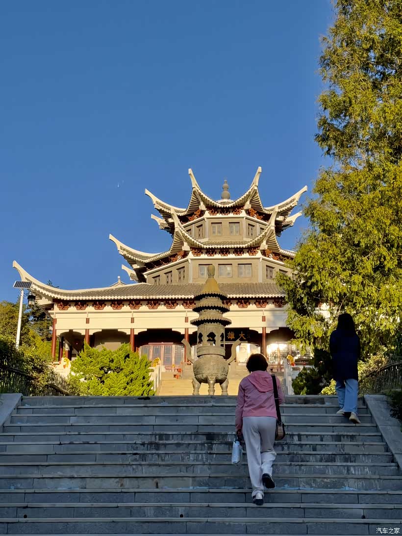 大概上午九点,终于抵达天台山景区。山腰停车场空位还多,15元/天的停车费很划算。下车时发现,虽然开了一个多小时山路,但座椅包裹性很好,腰部支撑到位,完全没有腰酸背痛的感觉。收拾好东西往天台寺走,山间薄雾缭绕,古寺飞檐在雾中若隐若现,像极了水墨画里的场景。