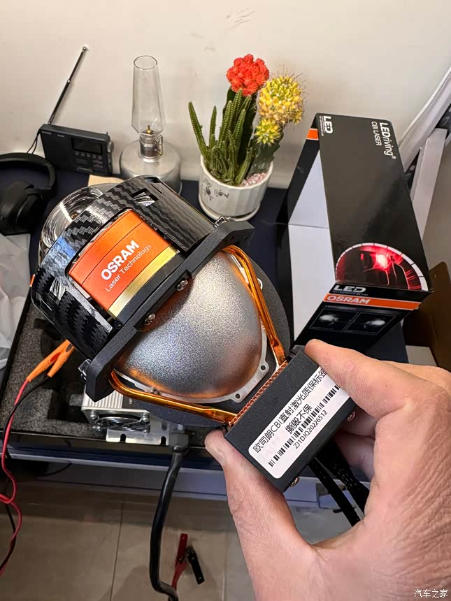 因为有几年没研究了,对目前市面上的产品不是很了解了,在店里介绍了一下几个档次的产品,选择的范围变成了欧司朗和奥兹姆的LED或者激光大灯,本着多年改灯一直用的欧司朗的,所以还是比较坚定的选了品牌,在店里对比LED和激光的时候,说的也很好理解,激光就是纯远光辅助,近光的时候没用,这个让我比较纠结,同事的大切换了LED的透镜,已经挺明显的改变了,有没有必要多花1千多弄个激光辅助远光,毕竟挂着远光开的机会不多,考虑了几分钟,已然改了,干脆一次到位,直接拆包欧司朗的耀望者,毕竟一直买东西只要看上的就买高配的,不想有后悔的机会。
