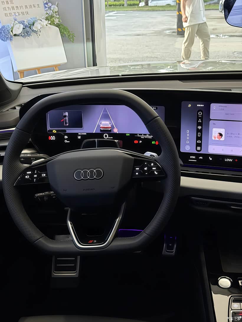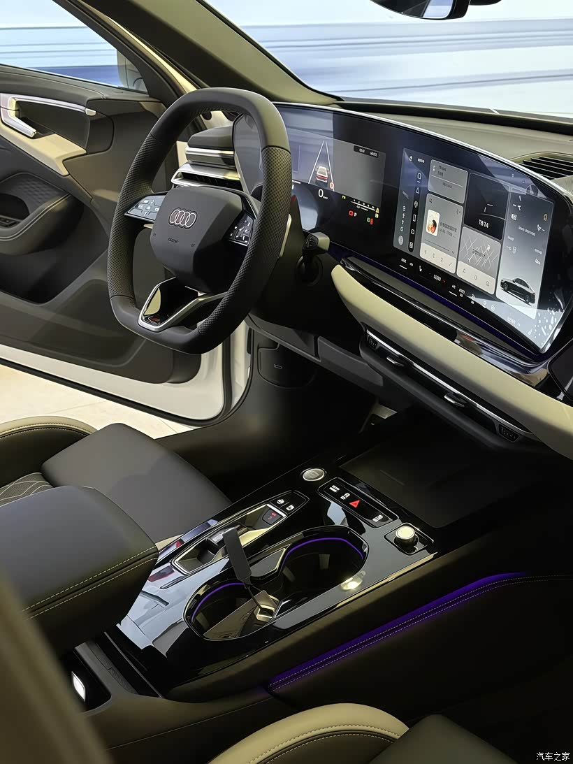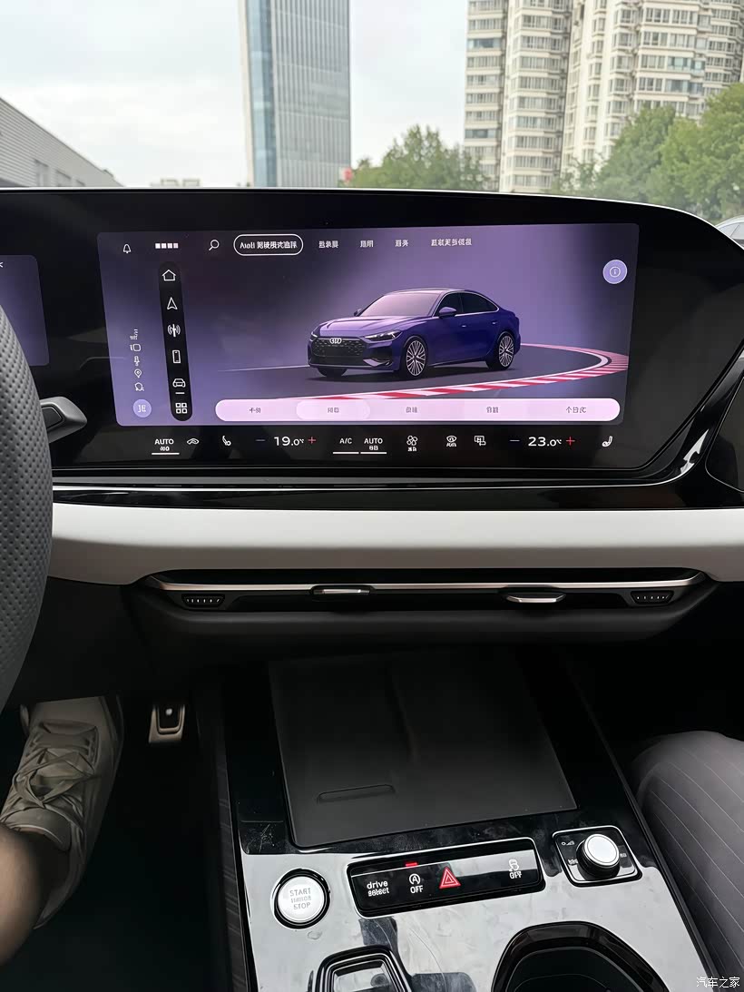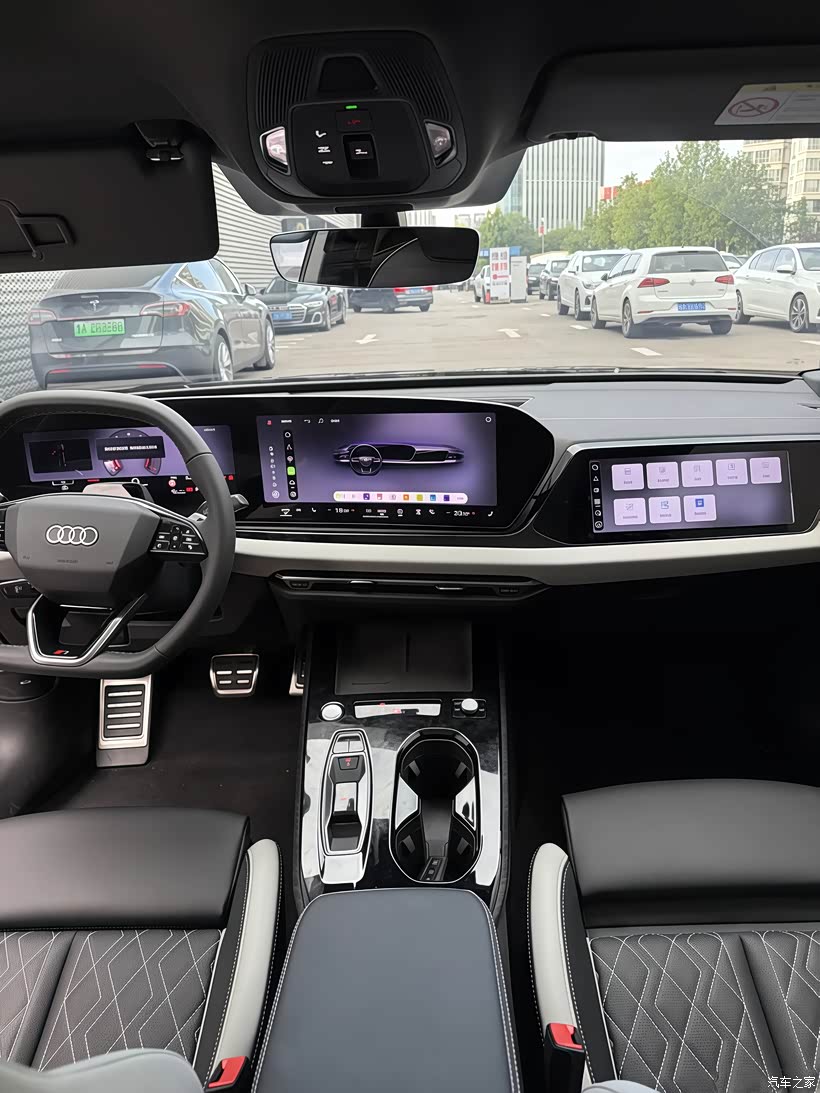 车内的设计其实跟上汽奥迪A5L没什么太大区别,三块屏幕,中间这一块是一个14.5英寸的OLED屏幕,它的清晰度和刷新率我觉得要比之前的版本要好用很多,而且里边搭载了一些比较常规的APP,有微信,全民听歌等等,也可以在里面看电影,应用市场的app还是很多的,副驾驶这块屏幕其实跟中控屏它的使用逻辑其实是一样的,没什么太大区别。仪表屏采用了一个11.9英寸的全液晶仪表!