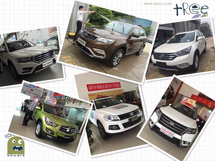 最终筛选了东风AX7、海马S5、比亚迪宋、比亚迪S7、众泰T600、东南DX7、幻速S6、吉利博越、哈弗H6C等一批候选车型,记好了这些候选车型后就直接去了汽车城。