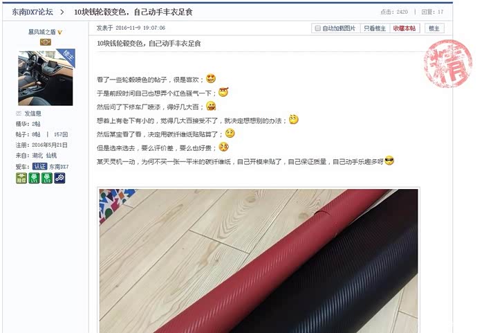 比如给轮毂贴和中控碳纤维纸。