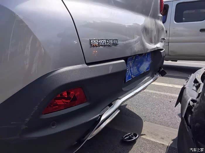 在被追尾时,车在原地完全没移动!除了铁皮凹了些,保险杠等都完好。