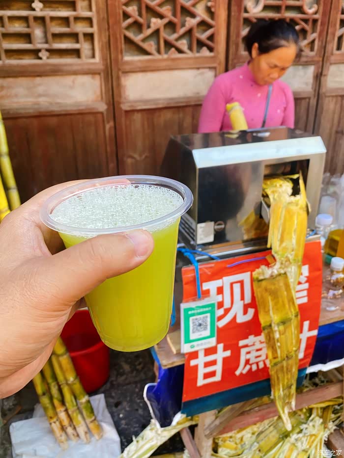 逛兴坪古镇喝一杯现榨甘蔗汁解解渴,不加水、不加糖、不加添加剂,味道非常甜。