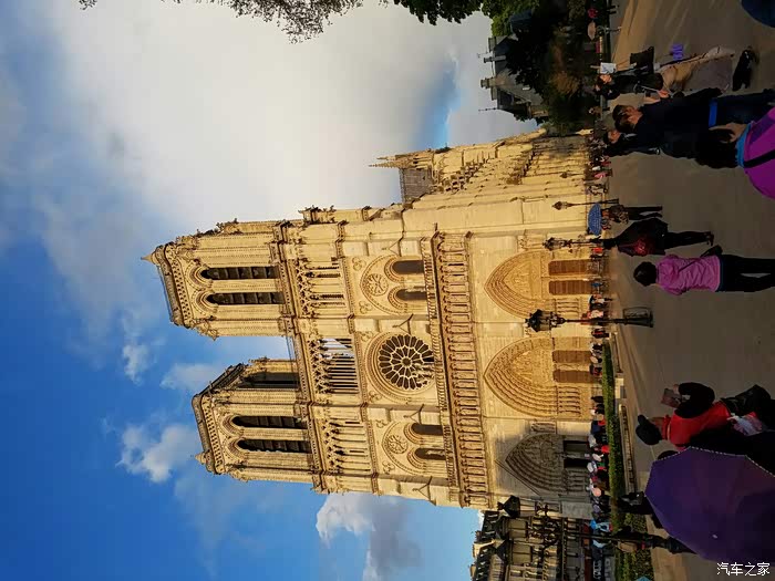 圣母院:巴黎圣母院大教堂(Cathédrale Notre Dame de Paris)是一座位于法国巴黎市中心、西堤岛上的教堂建筑,也是天主教巴黎总教区的主教座堂。圣母院约建造于1163年到1250年间,属哥特式建筑形式,是法兰西岛地区的哥特式教堂群里面,非常具有关键代表意义的一座。始建于1163年,欧洲早期哥特式建筑和雕刻艺术的代表,它是巴黎第一座哥特式建筑。集宗教、文化、建筑艺术于一身的,原为纪念罗马主神朱庇特而建造,随着岁月的流逝,逐渐成为巴黎圣母院早期基督教的教堂。它建造全部采用石材,其特点是高耸挺拔,辉煌壮丽,整个建筑庄严和谐,站在塞纳河畔,远眺高高矗立的圣母院,巨大的门四周布满了雕像,一层接着一层,石像越往里层越小。所有的柱子都挺拔修长,与上部尖尖的拱券一气呵成。从外面仰望教堂,那高峻的形体加上顶部耸立的钟塔和尖塔,使人感到一种向蓝天升腾的雄姿。巴黎圣母院的主立面是世界上哥特式建筑中最美妙、最和谐的,水平与竖直的比例近乎黄金比1:0.618,立柱和装饰带把立面分为9块小的黄金比矩形,十分和谐匀称。参观时入场队伍绵延几百米,却依然秩序井然,不得不感叹下素质情怀。