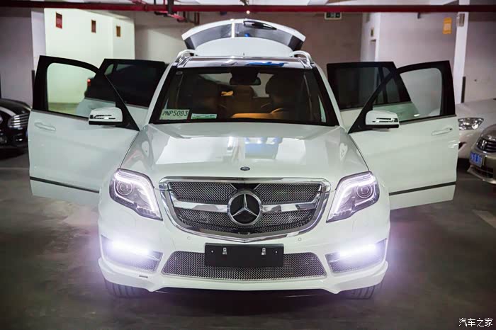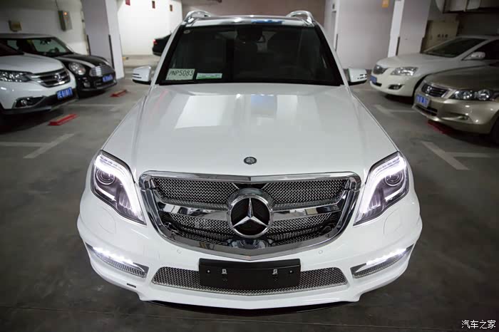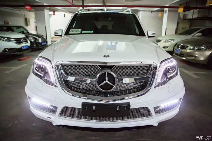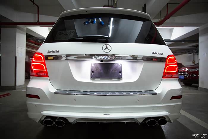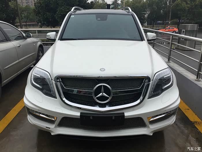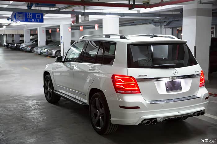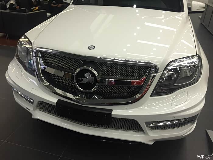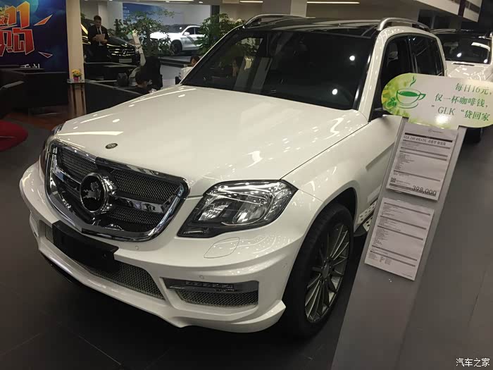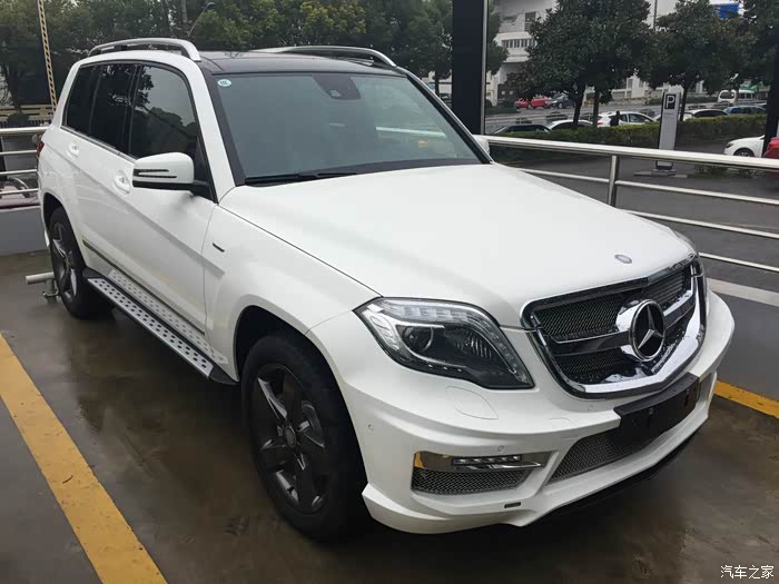 有朋友正好最近在中升购车,同样没有牌照但听说也能走奔驰金融,于是就去中升问了一下。果不其然,中升可以在没有牌照的情况下依然让你通过奔驰金融贷款,只需要交付5万保证金即可(在拍到牌照时归还)。(这里先声明不是替某某4S店做广告,是想实事求是的阐明事实帮助后期需要贷款购车的朋友。)进到中升展厅后看见展厅中停了一辆卡尔森改装的GLK,当时就觉得加了卡尔森后前脸明显感觉霸气了很多,再一问他们这边也有260时尚版白外黑内现车,手续都办完后可以立即提车。唯一的不方便是他们GLK车型不加装卡尔森改装不卖车,因为GLK停产,如果改装件不随车一起卖掉之后就都成库存了,虽说主观上有点难以接受,但实际再谈下来现金优惠幅度还是给的比较大(5.5万现金优惠,卡尔森改装加4万,实际也就是1.5万的优惠。其他地方260时尚型当时问下来原车也就最多2.5万的优惠,只差一万多个包围自己还是能够接受的),因此立即下订金签合同,拿下卡尔森版本的GLK。最后实际改装部分是前后包围+排气(改成2边4出的排气,据说改完声音很厚重,低转速时有跑车的效果,当然,自己没听过没改过的排气声音,所以无从对比)。轮毂如果要改要多加4万,原车的熏黑轮毂自己也蛮喜欢,因此就不花这个冤枉钱了。