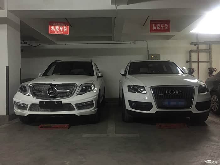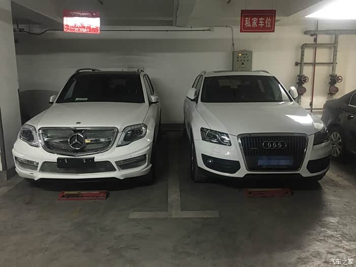 最后的最后,开回家停好车后发现旁边停了一辆奥迪Q5,然后就对比了一下,发现其实GLK无论是高度还是长度都和Q5差不多大。发2张照片上来也让大家可以进行一下对比。