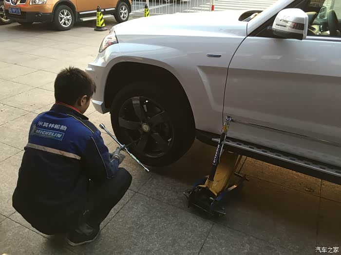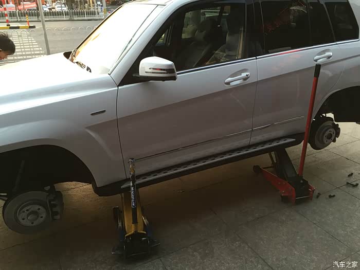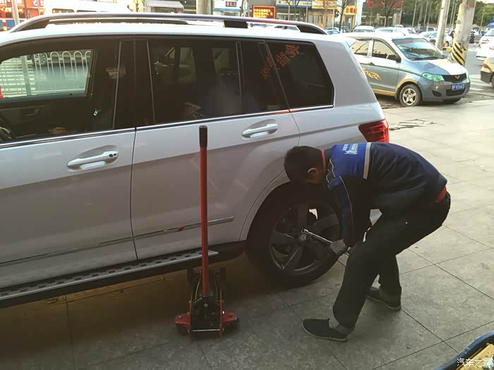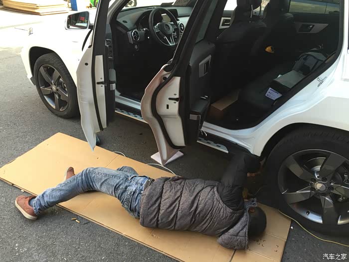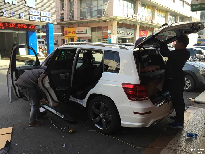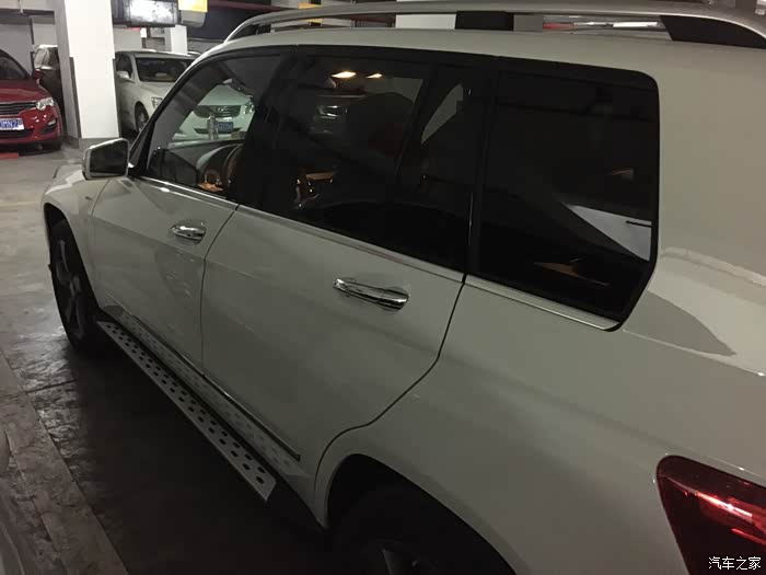 提车那天还发生了一个小插曲,我这辆车其实是不装踏板的,而旁边那辆普通版本的GLK其实是要求装踏板的。最后如图片上所示,踏板被装到我的车上了...销售发现情况不对,再临时从他们的改装装潢中心叫了个技师过来当场把踏板拆下装到另一辆车上。当时正好是中午11店半,技师吃完午饭再过来,再加当场作业,最后提车多等了2个小时。