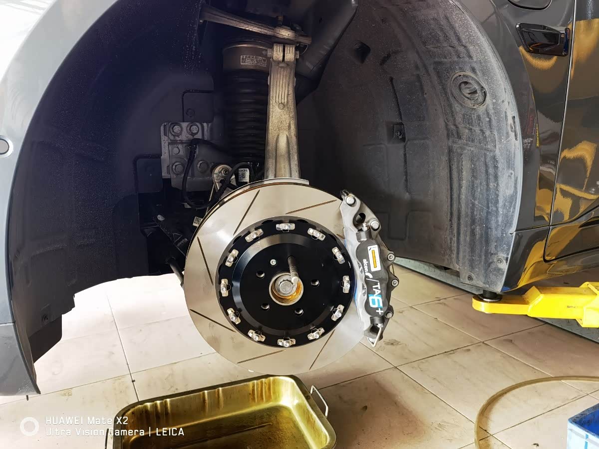盘片重量减轻5KG一边,卡钳+皮+桥码减重3.8kg一边,整套总共减重17.6KG