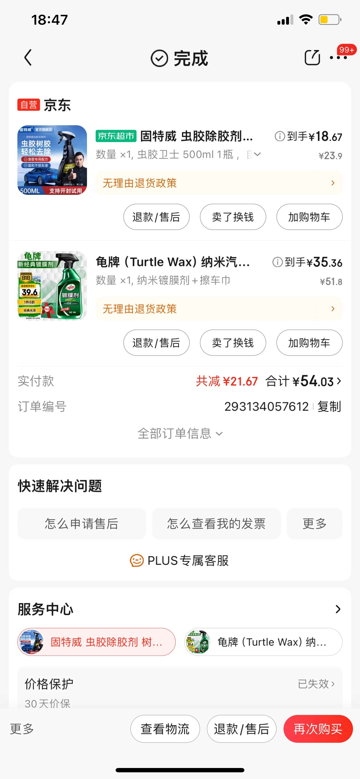 表面去污+镀膜:两件一共54元,可以用10次,平均一次5元