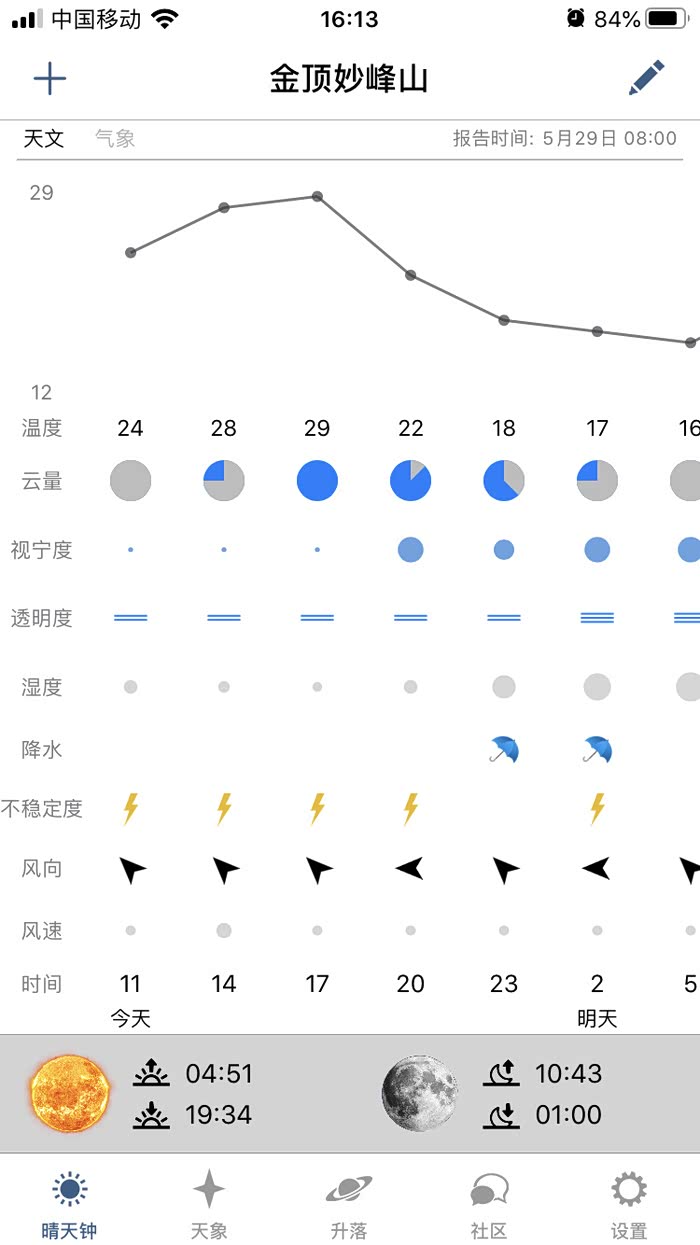 查询多种天气预报显示:周六阴天能见度也不好,周日早上会有雷阵雨,8点左右就会放晴,于是决定周日早上早早出发。