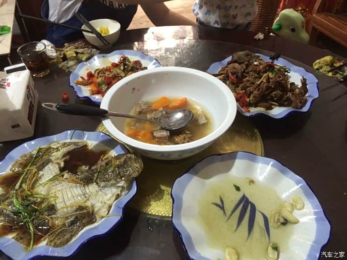 开了三个小时,晚上七八点到达会昌筠门岭镇目的地,累死又饿死,刚点的菜端上来就被吃个精光,牢房里放出来的一样,狼吞虎咽。跟我初中的同学聚会有的一拼,大写的服了,不过这里的夜宵还挺不错的,很入味
