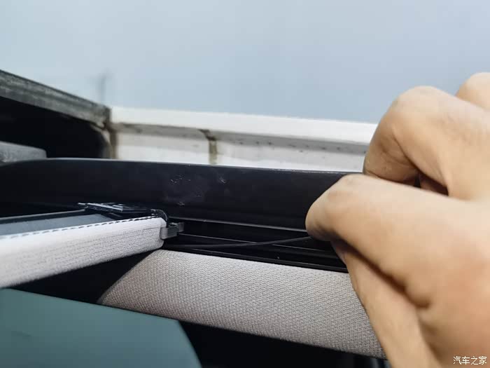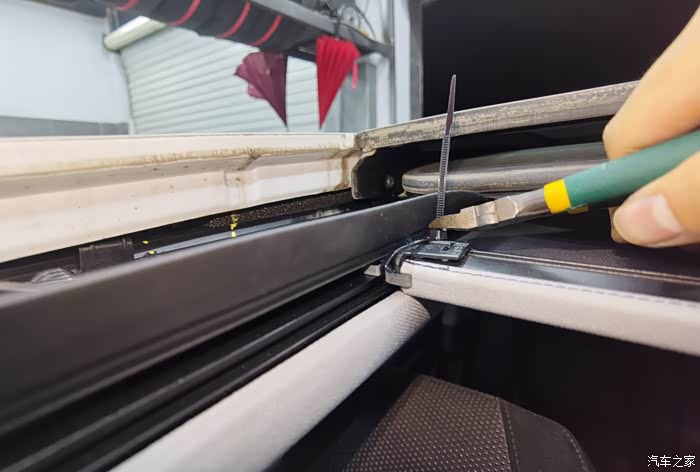 “然后扎带先用手处理下,把前端略微折弯往上翘起一点 ”是顺利把扎带穿过天窗卡扣的关键,佩服石头版主为车友考虑的无微不至。