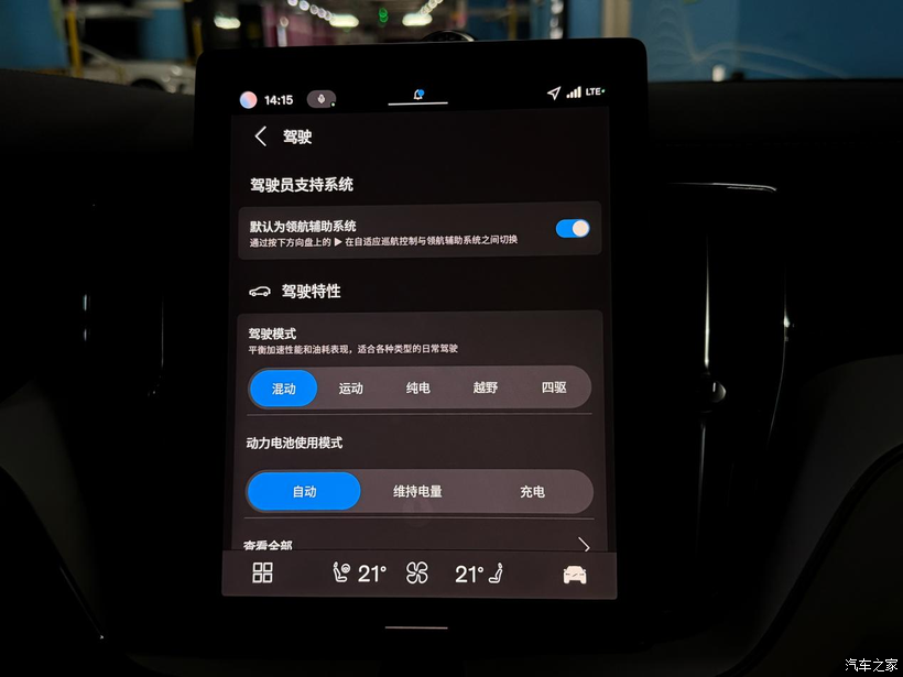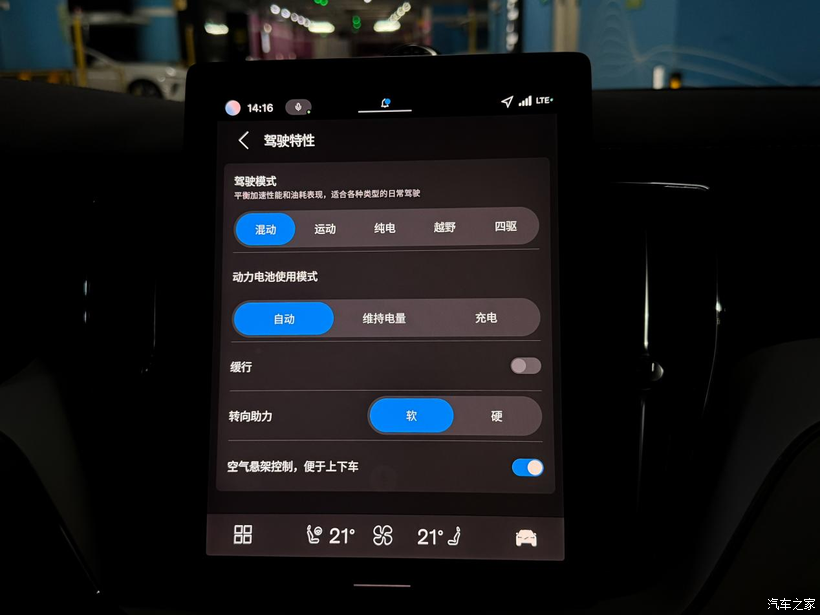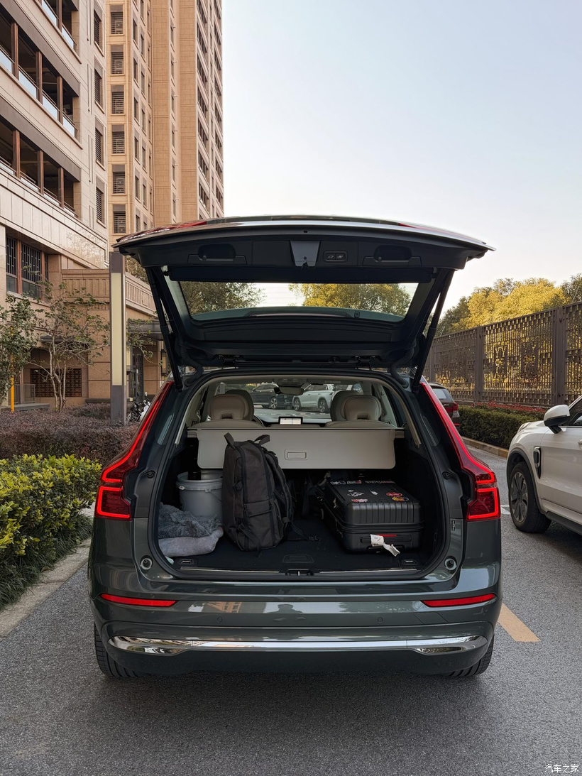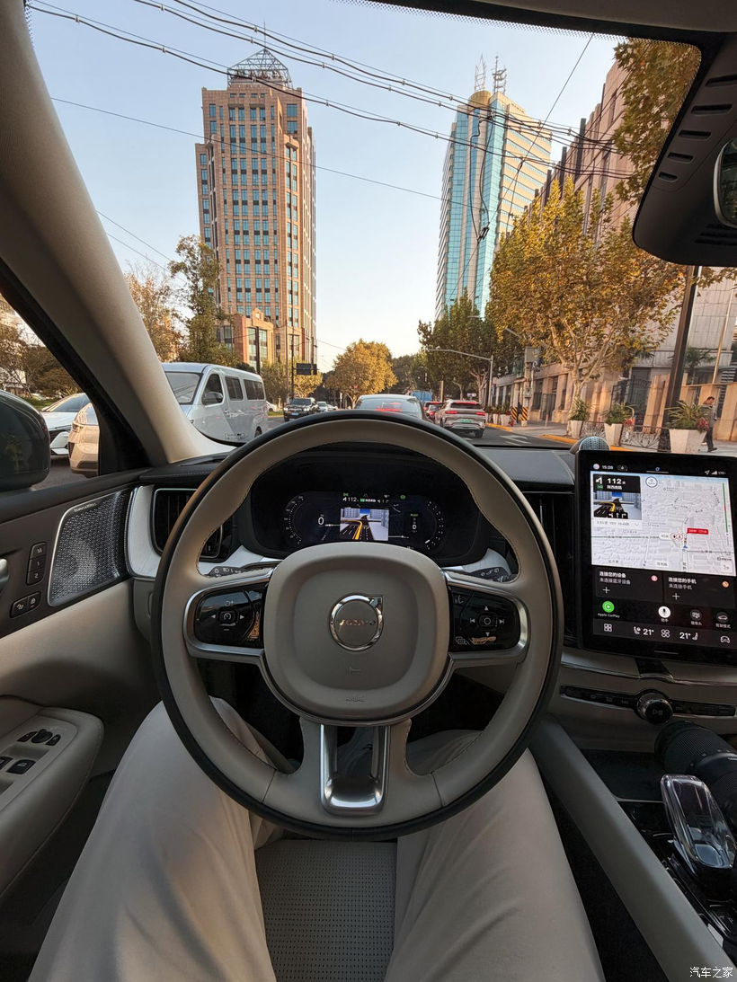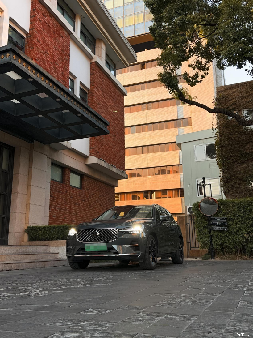 A 面:温柔的超级奶爸 每天早上送女儿去幼儿园,或者周末带老婆去商场,我都会切到“纯电模式”。 这时候,它就是一台后驱电车。车里安静,起步丝滑,悬挂滤震很有高级感。老婆坐在副驾,孩子坐在后排安全座椅上,那是岁月静好。满电跑个 50 多公里,日常通勤一滴油不用,用车成本低到忽略不计。沃尔沃引以为傲的 City Safety 主动安全系统,随时帮我盯着路况,那种安全感是刻在骨子里的。