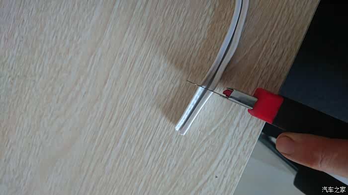 胶皮包条一样的东西,中间包有铁片夹子一样的东西,用裁纸刀将其切割成为相应的形状,然后用胶皮锤子钉入门版中就算完成了,由于有金属片在其中,所以很结实。实际效果还行,虽然有点山寨,但是还好吧,总比车企漆坏掉了好。