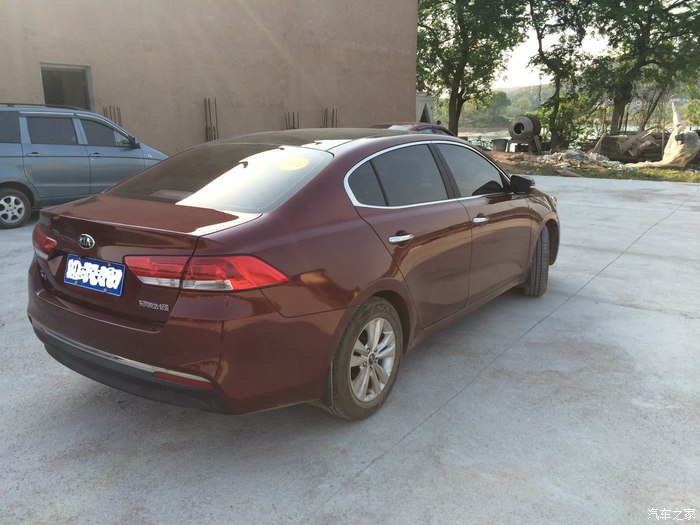 选车过程比较简单,在网上精挑细选一番后,我和媳妇敲定的车型很多:昂克塞拉、标致408、速腾、H6、CS75、IX25、K3、K4,就不一一列举了。或许是命中注定,我们去汽贸城看车的第一家店子就是起亚,看到K4(展车是D版,而且还是红色)的第一眼感受就是实车比图片还要好看,坐进去体验,舒适,空间很足,媳妇坐后排可以翘二郎腿,内饰简单却很精致,我和媳妇的心瞬间就被小4俘获了,其他的车系不看也罢,找销售问价,却不尽人意,估计销售看我们很想买,价格硬是咬的紧,优惠3000,送脚垫,挂饰,方向盘套,想着买车之后还要装导航,贴膜,资金肯定不够,然后看了下G版的配置,觉得也差不多,转G版,然而G版却被告知现车只有白色,红色需要预定,1个月内可以提车,我和媳妇商量说可以等,只要年前能提车就行,再经讨价还价,销售给优惠3800,送贴膜+导航,我和媳妇觉得还可以,交定金5000(订车日期是14年12月15号)。等车的过程还是比较煎熬的,直到1月13号,销售才告诉我们车到了,父上说选了个好日子,让我们1月17号去提车,刚好又是周末,那就再等上几天吧,到17号那天,那个心情真是激动啊,早早的来到汽贸城,找上销售办理手续,中途还花800大洋装个行车仪,我和媳妇耳根软,被销售一说就心动了,装导航的过程比较惨烈,就没有留纪念了,车是14年12月生产的、提车时显示6公里,非常完美!办完手续,算好时间11点过8分,我和媳妇带着小4回家咯,回家后也没闲着,保险、交税、上牌一气呵成,至此,小4就正式成为我们家的一员了。购车共花费:裸车145000+行车仪800+保险7217+购置税12393+办牌125=165535。