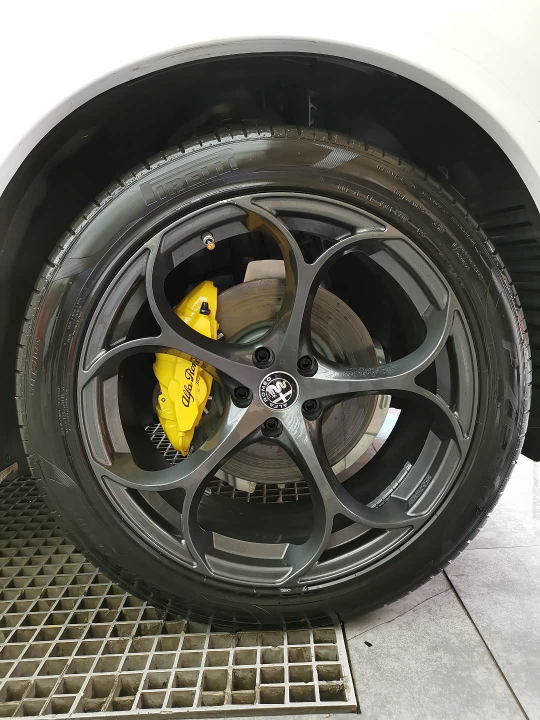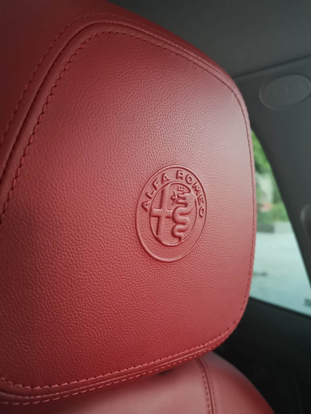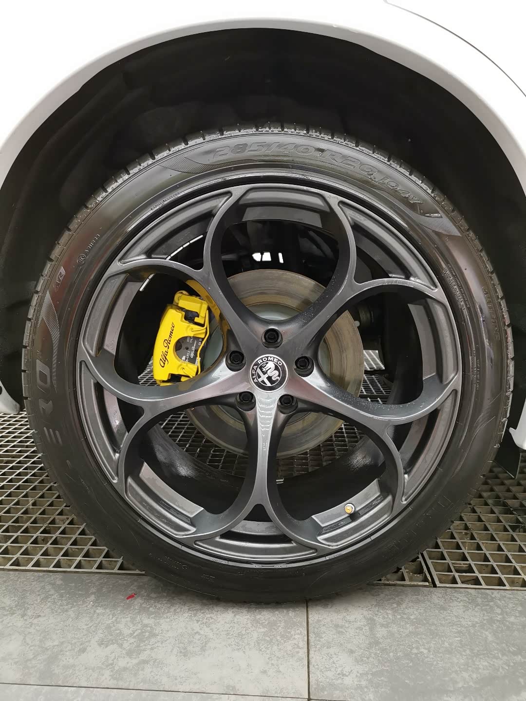 ,刹车也很给力,brembo的卡钳和大陆的电控刹车系统非常灵敏,网上喷的刹车感觉不佳是不了解电控刹车原理,比传统气泵式刹车刹车响应时间要更短、更安全。唯一一个缺点是原厂四季胎会影响刹车距离,但是这个轮胎其实是ar考虑到中国的地域辽阔,不同地区的气候与路况差异较大,特意找倍耐力定制的四季胎,原厂价格一条3000左右,成本其实更高了,但是为了尽可能完美,还是换了四叶草原配P0和四叶草规格锻造轮毂,这车因为偏运动设计,车身宽度也是同级最宽,基本达到中大型gle、x5的标准,气势十足,换了之后轮胎轮毂还在轮眉范围内,并没有外突,而且高速明显更稳了,刹车更有信心,起步加速的响应感觉也更快,强烈建议280的st和g四轮都换成四叶草规格。还有一个优点是车内无异味,同级里估计只有沃尔沃能比了吧,奢侈品之国玩皮具水平更没的说,车内真皮用料扎实做工精细,尤其头枕logo很精致。不好意思说的比较凌乱,最后用一句话总结,如果再给我一次选择的机会,我还是会选阿尔法罗密欧。