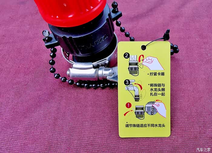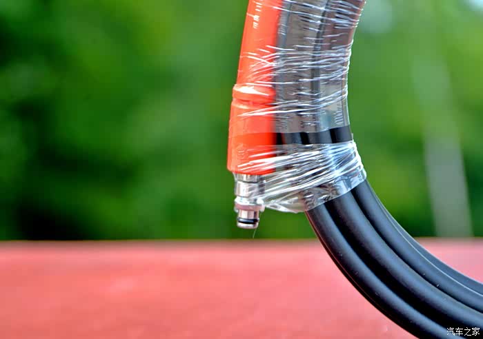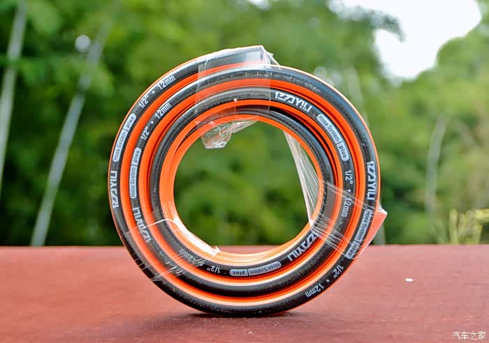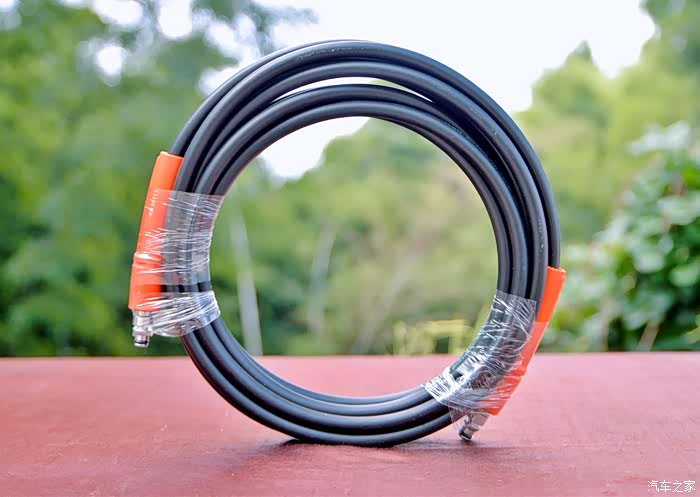 这就是出水管了。两端完全相同,用起来更方便,为宜的遗憾就是比升级款短很多,想不动主机绕车一周是不可能。管子的厚度也比升级款要稍薄一些