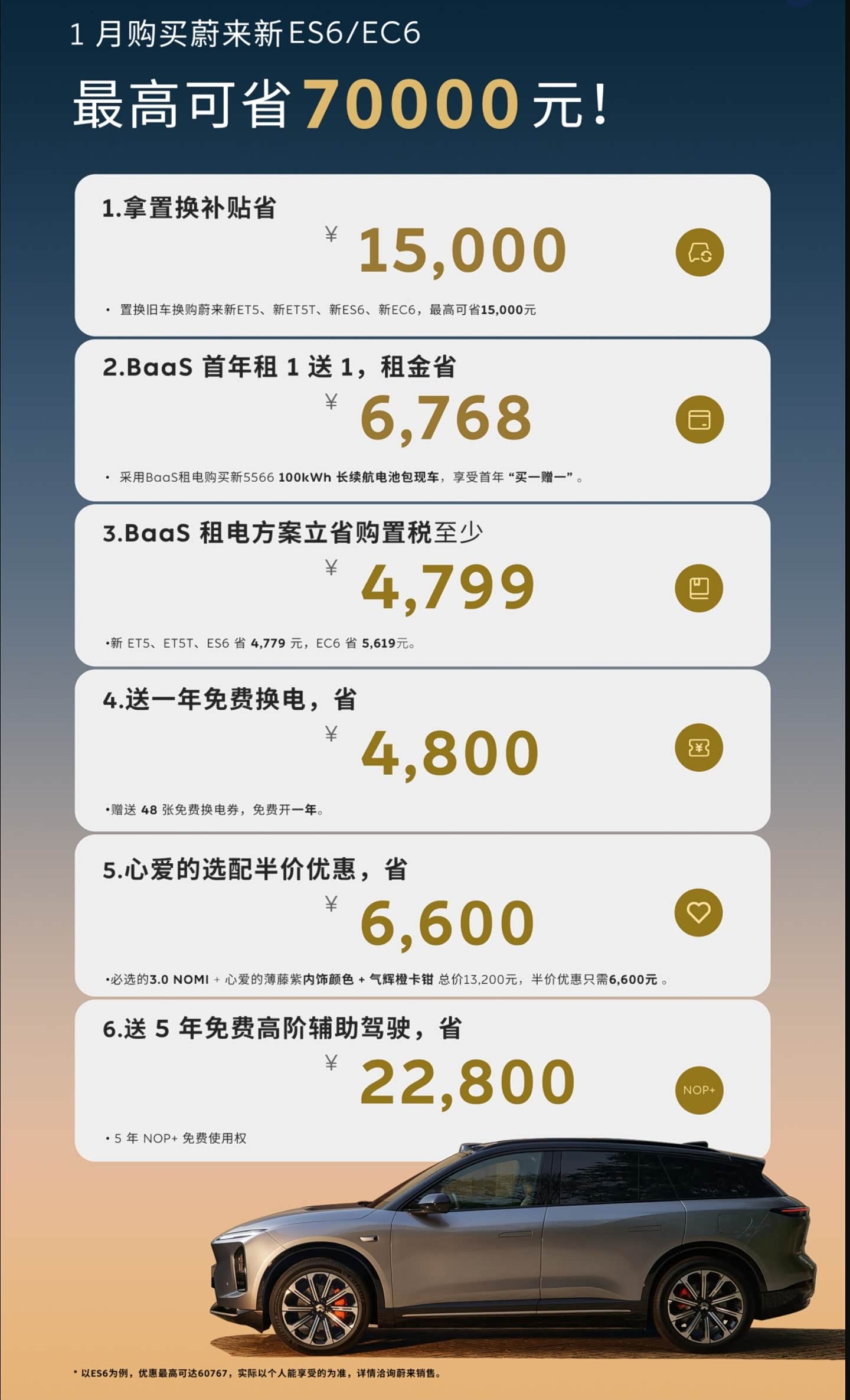 可以看到,66车型在新款出了以后,除了加量不加价,电池标配100度以外,促销的力度也在逐渐加码!我觉得作为原来蔚来最走量的车型,也是蔚来主品牌里SUV卖的最好的车型,今年ES6远不止这个,应该还有大动作!喜欢ES6的不妨多关注关注,当然我一旦看到具体消息也会第一时间发布,毕竟今年对于今年购车新政来说,对于ES6这样可以车电分离的车型是利大于弊的。